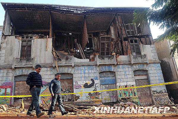 資料圖:2月27日,智利瓦爾帕萊索,兩名男子從一座遭受地震破壞的樓房前經(jīng)過。新華社/法新