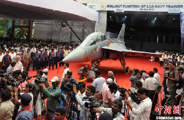 近日,印度首架海軍輕型作戰飛機完成下線工作,印度國防部長A.K.安東尼將這一事件描述為“一個難忘的時刻”。