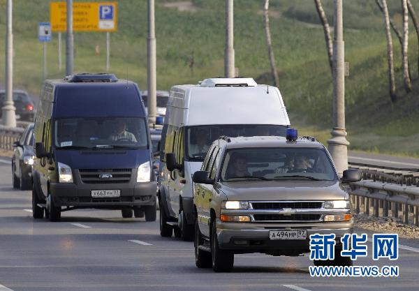 7月9日,載有被美國驅逐出境的俄羅斯間諜嫌疑人的車隊從俄羅斯的多莫杰多沃機場駛向莫斯科市區。美國司法部當天證實,美國和俄羅斯已經在奧地利首都維也納成功完成間諜交換。 新華社/路透