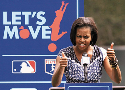 米歇爾近期頻頻在公眾前現(xiàn)身,推動超重兒童多做運動,她上周現(xiàn)身巴爾的摩籃球場,獲得現(xiàn)場大批學(xué)童鼓掌及歡呼支持。難怪有資深民主黨軍師指出,“奧巴馬令人動怒;米歇爾令人歡容。”