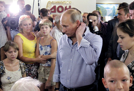 4日,俄羅斯總理普京視察火災受災地區(qū)。他日前親自回復了一名網(wǎng)友對政府消防工作的不滿。