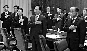 5月21日,李明博在首爾的總統(tǒng)府與內閣成員召開緊急會議。