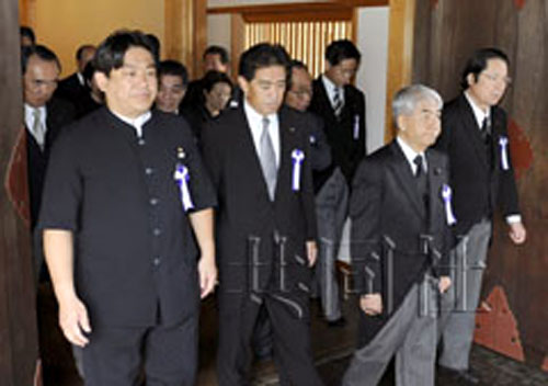 據介紹,包括該議員會的成員在內,共有40余名國會議員在上午進行了參拜,另有約50名國會議員派代表參拜。民主黨參議員羽田雄一郎、日本遺族會會長古賀誠(自民黨前干事長)、“奮起日本”黨代表平沼赳夫等集體參拜。此外,自民黨總裁谷垣禎一及前首相安倍晉三也分別進行了參拜。