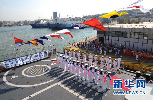 8月9日,中國海軍護(hù)航編隊(duì)中的“廣州”艦抵達(dá)希臘的比雷埃夫斯港。新華社記者劉春暉攝