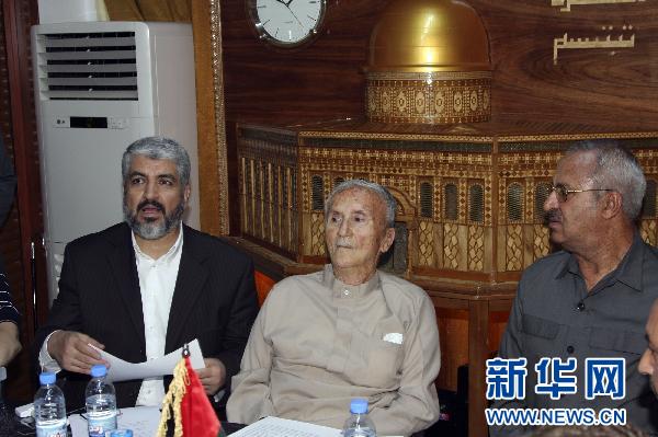 資料圖:8月7日,巴勒斯坦全國委員會最高后續行動委員會主席巴薩姆·沙克阿(中)、巴勒斯坦伊斯蘭抵抗運動(哈馬斯)政治領導人邁沙阿勒(左)與解放巴勒斯坦人民陣線(總指揮部)副總書記塔拉勒·納吉在會議上。巴勒斯坦全國委員會最高后續行動委員會7日在大馬士革召開會議后發表聲明說,該委員會反對恢復巴以直接談判。巴勒斯坦全國委員會最高后續行動委員會主席巴薩姆·沙克阿主持了會議,巴勒斯坦伊斯蘭抵抗運動(哈馬斯)政治領導人邁沙阿勒和參加“巴勒斯坦力量聯盟”的另外7個巴勒斯坦派別領導人以及一些巴勒斯坦知名人士參加了會議。 新華社發(巴西姆 攝)