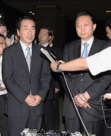 30日,日本首相菅直人與前首相鳩山會面
