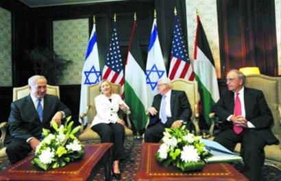以色列總理本雅明·內塔尼亞胡和巴勒斯坦民族權力機構主席馬哈茂德·阿巴斯14日在埃及旅游勝地沙姆沙伊赫舉行本月以來第二輪直接談判。美國國務卿希拉里·克林頓和美國中東問題特使喬治·米切爾參加談判。