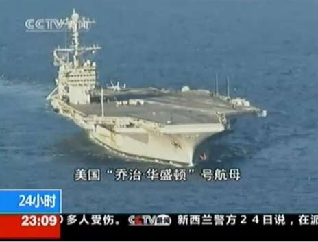 視頻截圖:美韓28日軍演 美航母“參戰” 來源:中央電視臺