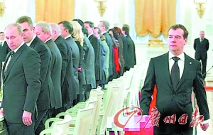 據美國媒體12月27日報道,在27日召開的俄羅斯聯邦國務會議上,俄總統梅德韋杰夫跟俄總理普京因民族矛盾問題發生爭執。由于此會議由俄羅斯24小時新聞電視臺“vesti-24”直播,因此全國觀眾都能看到“梅普吵架”的情景。