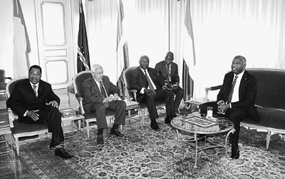 12月28日,科特迪瓦阿比讓,西非國家經(jīng)濟共同體派出貝寧、塞拉利昂和佛得角三國總統(tǒng)率領的特別高級代表團會晤科特迪瓦前總統(tǒng)巴博。人民圖片