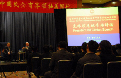 由“華佗論箭”、“鄭和艦隊(duì)”共同主辦的“哈佛中國(guó)富民感恩論壇暨中國(guó)商界領(lǐng)袖美國(guó)行”,7日至13日在紐約、波士頓和加州等地進(jìn)行。這個(gè)由170多名中國(guó)各省市民營(yíng)企業(yè)家組成的龐大代表團(tuán),9日在紐約舉行了首日論壇,還邀請(qǐng)到美國(guó)前總統(tǒng)克林頓參加。