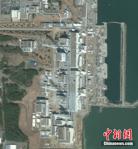 3月18日(當(dāng)?shù)貢r(shí)間上午10時(shí)03分)拍攝的衛(wèi)星照片顯示的是日本福島第一核電站。