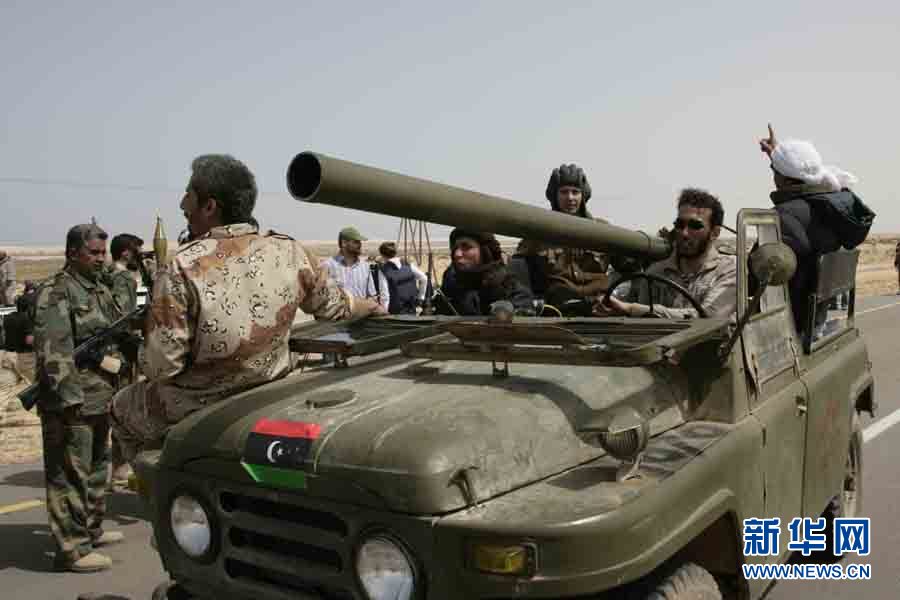 3月30日,部分利比亞反政府武裝人員準(zhǔn)備從距卡扎菲的家鄉(xiāng)蘇爾特約250公里的小鎮(zhèn)拉斯拉努夫撤離。 新華社發(fā)(納賽爾·努里攝)
