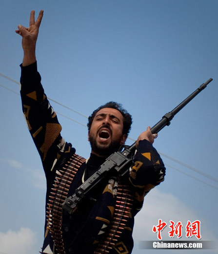 2011年3月20日,班加西市郊,反政府武裝士兵慶祝勝利。