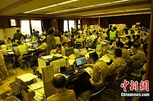 3月29日,福島第一核電站的核泄漏事件持續升級,圖為福島市災害對策本部工作人員忙碌的景象。中新社發 孫冉 攝