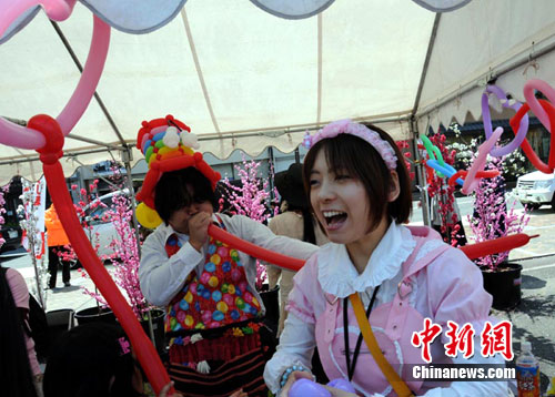福島街頭義賣特色小工藝品為強(qiáng)震海嘯災(zāi)區(qū)募集義援金。中新社記者 孫自法 攝