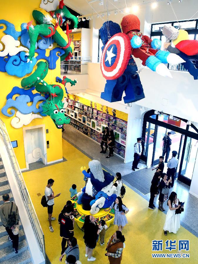 5月11日,游客在上海迪士尼小鎮(zhèn)的樂高品牌旗艦店參觀。新華社記者 陳飛 攝