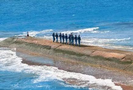 1月5日,守衛(wèi)在南沙群島永暑礁上的海軍官兵在防波堤上巡邏(查春明攝/本刊)