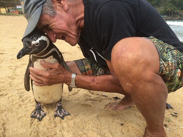 據英國《每日郵報》9月26日報道,在巴西,一位名叫佩德拉(Pereira)的老人在海邊救起了一只滿身油污、奄奄一息的小企鵝。在他的悉心照料下,小企鵝最終恢復健康重返大海。不過,這只企鵝并沒有一去不復返。每年,它都會游5000英里(約8047千米),回巴西看望自己的救命恩人。