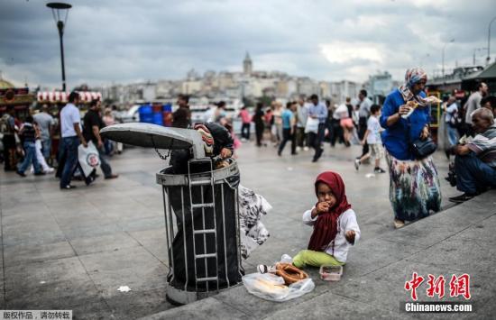 資料圖:當地時間2014年8月18日,伊拉克伊斯坦布爾,敘利亞難民逃至土耳其避難,一名難民兒童吃媽媽從垃圾桶揀出來的食物。