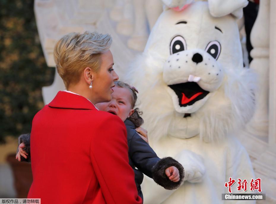 摩納哥親王一家出席圣誕樹典禮 小公主被“兔子”嚇哭