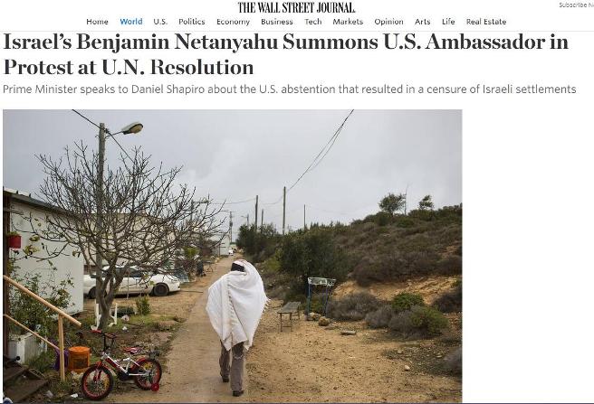 【環(huán)球網(wǎng)報(bào)道 記者 余鵬飛】據(jù)美國《華爾街日報(bào)》12月25日報(bào)道,針對譴責(zé)以色列在約旦河西岸建造猶太人定居點(diǎn)的聯(lián)合國安理會(huì)決議,美國拒絕投下否決票,以色列總理內(nèi)塔尼亞胡周日召見了美國大使,對奧巴馬政府展開嚴(yán)厲抨擊。