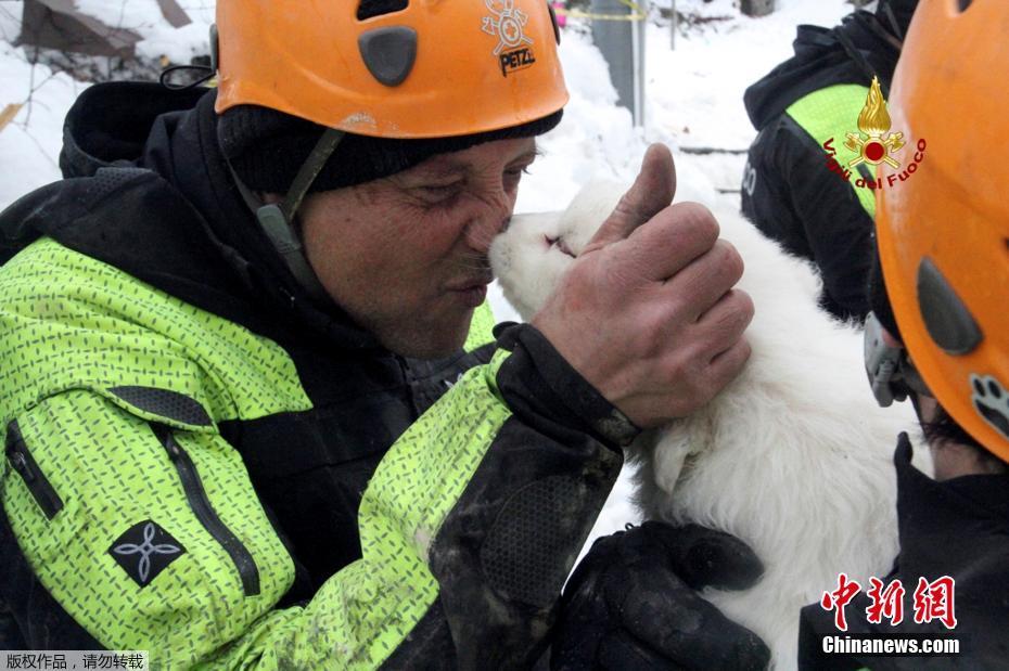 當地時間1月23日,意大利救援人員在被雪掩埋的酒店附近找到三只被埋的狗寶寶。三個呆萌小家伙的獲救讓工作人員喜出望外,熱情地對它們又抱又親。意大利中部的一處滑雪度假酒店當地時間1月18日遭到雪崩掩埋,造成賓館內超30人失蹤。