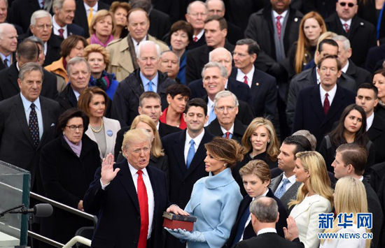 1月20日,在美國首都華盛頓國會山,特朗普在美國第45任總統(tǒng)就職典禮上宣誓。當(dāng)日,美國當(dāng)選總統(tǒng)、共和黨人特朗普在美國首都華盛頓國會山舉行的就職典禮上正式宣誓就任美國第45任總統(tǒng)。 新華社記者殷博古攝