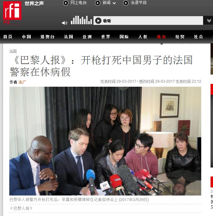 29日,死者親屬聘請的3名律師和死者的全家(妻子和一子四女)在地處巴黎香榭麗舍大道后邊的馬爾博夫(Marbeuf)街律師事務所召開記者會。記者會引來眾多中法媒體。法新社報道稱,死者親屬在記者會上呼吁巴黎同胞保持冷靜。