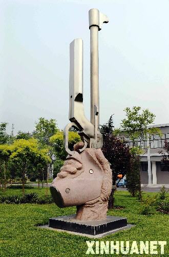 位于北京市石景山區(qū)的北京射擊館是奧運會射擊項目的比賽場館。這是北京射擊館外的雕塑(5月16日攝)。 新華社記者王頌攝