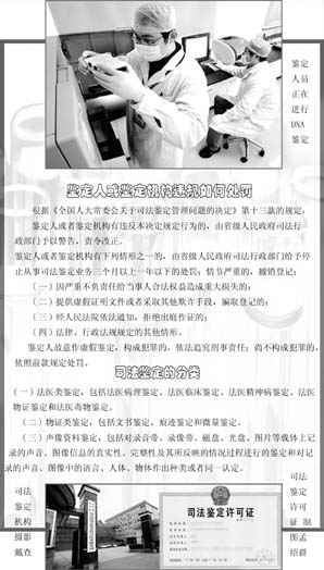記者了解到,司法部去年10月在全國范圍內統一組織開展了為期3個月的執法大檢查活動,抽調了7個省的分管領導和處長,組成5個督察組,分赴10個省(區)、20多個市縣,查找司法鑒定管理和執業活動的薄弱環節,落實整改措施,規范執業行為。今年底,司法部將部署開展司法鑒定機構清理整頓工作,進一步規范司法鑒定行業秩序。