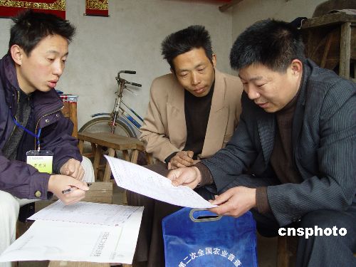 資料圖:第二次全國農業普查中,江西省樂安縣1870名普查員和356名普查指導員放棄假日休息時間走村入戶,深入田頭地角進行農業普查登記。 中新社發 邱武章 攝