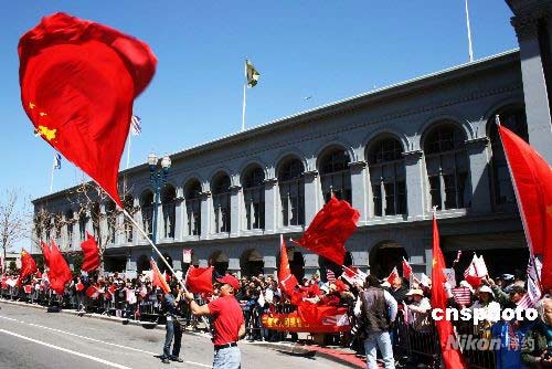 在北京奧運(yùn)圣火傳遞過程中,少數(shù)“藏獨”分子企圖干擾和破壞,對此華僑華人表現(xiàn)出了前所未有的團(tuán)結(jié),他們自發(fā)行動,護(hù)衛(wèi)圣火。李海峰說,“從電視、報紙和網(wǎng)站上可以看見,華僑華人保護(hù)圣火的聲勢非常浩大,五星紅旗到處飄揚(yáng),支持奧運(yùn)、祝福北京、譴責(zé)‘藏獨’的標(biāo)語也很醒目,且都是自發(fā)行動。華僑華人很激動,表現(xiàn)很理智。”