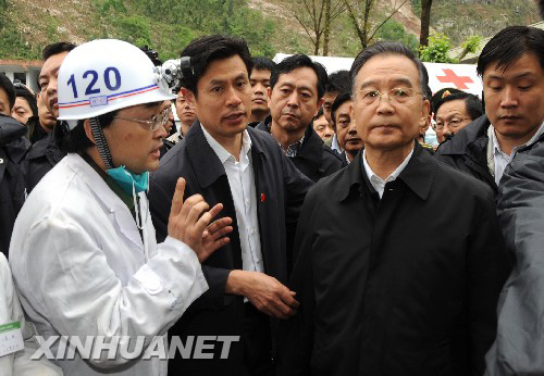 新華網快訊:溫家寶總理10時許來到距北川縣縣城僅兩公里的曲山鎮察看災情。他強調,時間就是生命,要盡全力救人。