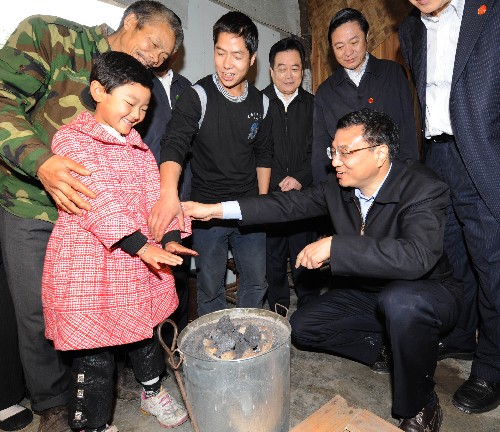 李克強(qiáng)臨時(shí)停車走進(jìn)漩口鎮(zhèn)油輾村村民汪娟住的過渡性房,察看屋頂有無漏縫、房子是否漏風(fēng),俯身詢問一日三餐吃得如何、御寒棉衣被是否夠用。在漁子溪村,李克強(qiáng)逐戶走進(jìn)羌族群眾家中,拉家常,問冷暖。在居住活動(dòng)板房的李玉明、馬學(xué)清家,李克強(qiáng)仔細(xì)了解板房保溫性能和過冬物品情況。看到當(dāng)?shù)卣o每家分發(fā)的藏式取暖爐,他蹲下身子,用手感受爐子暖不暖和,并叮囑村民要特別注意通風(fēng)和防火。李克強(qiáng)關(guān)切地說,重災(zāi)區(qū)山高坡陡、冬天陰冷潮濕,對(duì)需在過渡房越冬的村民,當(dāng)務(wù)之急是抓緊做好臨時(shí)住所的保暖處理,做好口糧、衣被、燃料等物資籌集供應(yīng)。他要求當(dāng)?shù)卣压ぷ髯錾睢⒆黾?xì)、做實(shí),確保受災(zāi)群眾吃得飽,穿得暖,安全度過冬天。