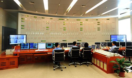 三峽電廠技術(shù)人員在三峽左岸電站總控室工作(5月21日攝)。新華社發(fā)(鄭家裕 攝)