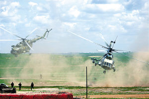 兩架俄軍武裝直升機(jī)在坦克配合下,從東方靠近“坤山鎮(zhèn)”,實(shí)施空降。大約20名俄軍士兵從機(jī)艙中翻滾而出,落地后迅速向鎮(zhèn)內(nèi)發(fā)起沖鋒。與此同時(shí),中方特種兵空降后從鎮(zhèn)西展開夾擊。這兩股兵力在裝甲車輛配合下,很快攻克了恐怖分子在“坤山鎮(zhèn)”的幾個(gè)重要據(jù)點(diǎn)。一批恐怖分子被俘,另一批倉皇出逃的恐怖分子則被包圍過來的中方反恐兵力擒獲。