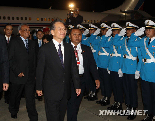 10月23日晚,應(yīng)泰國總理阿披實(shí)邀請,國務(wù)院總理溫家寶乘專機(jī)抵達(dá)泰國華欣,出席東亞領(lǐng)導(dǎo)人系列會(huì)議。新華社記者 劉衛(wèi)兵 攝