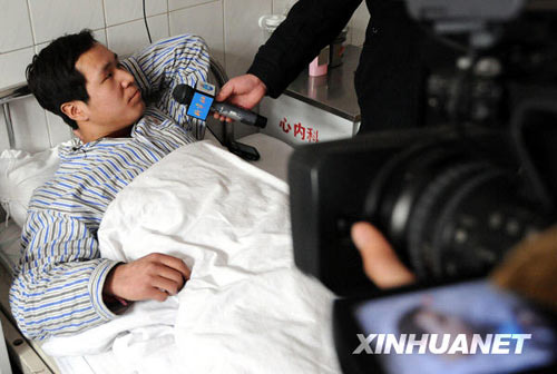 1月5日,一名在事故中中毒較輕的工人在醫院接受媒體記者采訪。新華社記者 楊世堯 攝