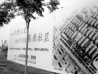 包括正在使用的舊村址在內的河南封丘縣王村鄉新李莊村近300畝土地,在沒有合法手續的情況下,很快將變成開發商廣告牌中的“300畝風情大盤、30萬平方米高尚社區”。 新華社記者 李鈞德 攝