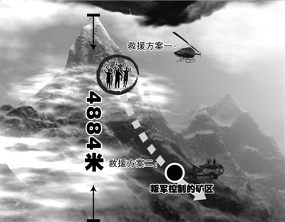 據(jù)了解,還有兩個方式走出原始秘境。一是乘坐直升機,但每天如約而至的大暴雨根本沒有適合直升機飛行的條件。二是穿過當?shù)嘏衍娍刂频牡V區(qū)。但這需要有過硬背景的探險公司與政府武裝聯(lián)合,喬裝成礦工用軍車乘夜間護送。途中還需要很大一筆費用來打點當?shù)氐奈溲b分子,這樣才能順利通行。這些條件缺一不可,否則,很有可能被當?shù)胤钦溲b扣押。7名隊員一直認為這一路徑十分冒險。但如果不能原路返回,穿越礦區(qū)就成為登山隊員走出原始秘境的一條捷徑。