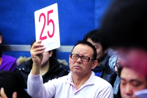 昨日,中國煙草下屬中維地產在望京地塊拍賣中頻頻舉牌,最終失利。遠洋旗下遠豪置業歷經84輪激烈角逐,以40.8億元將其收入囊中。周曉東 攝