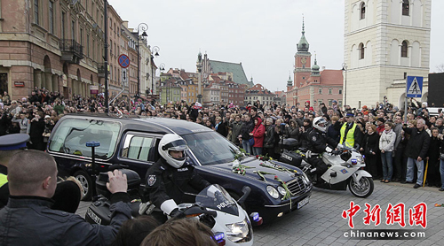當(dāng)?shù)貢r間11日下午,在俄羅斯斯摩棱斯克附近遭遇墜機(jī)遇難的波蘭總統(tǒng)卡欽斯基的遺體回到祖國,暫時停放在總統(tǒng)府,供親屬瞻仰。波蘭政府宣布,13日向公眾開放總統(tǒng)府供人們前往志哀。遇難者葬禮預(yù)計在17日舉行。