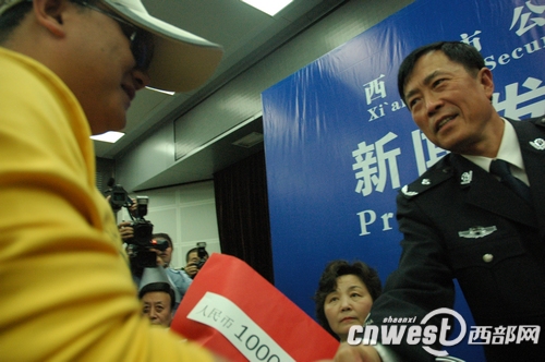 發布會最后,王海玲將公安部門承諾的1萬元懸賞金兌現給了為此案提供重要線索的群眾。(中新網-西部網)