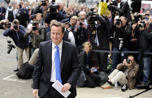 5月7日,英國保守黨領袖卡梅倫抵達英國倫敦一個俱樂部準備發表聲明。英國大選計票工作當日下午結束,沒有一個政黨在議會贏得半數以上議席,從而形成自1974年以來第一個“無多數議會”。但保守黨議席數大大超過工黨,成為議會第一大黨。新華社/路透