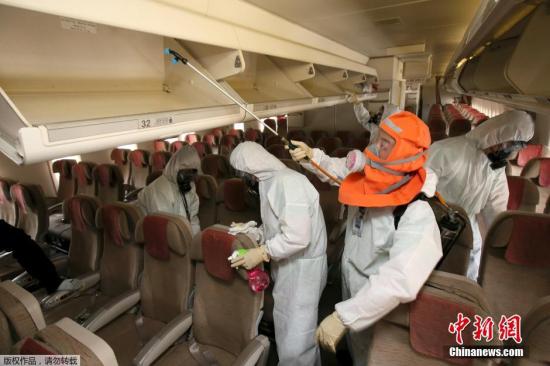 資料圖:韓國(guó)MERS病毒蔓延,韓國(guó)對(duì)公共交通工具進(jìn)行消毒。
