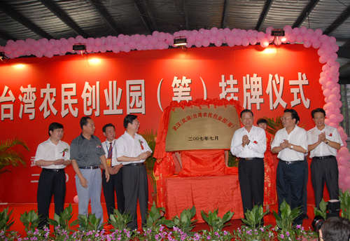 中國國民黨副主席江丙坤、湖北省及武漢市領導為武漢(武湖)臺灣農民創業園掛牌(圖片來源:武漢市臺辦)