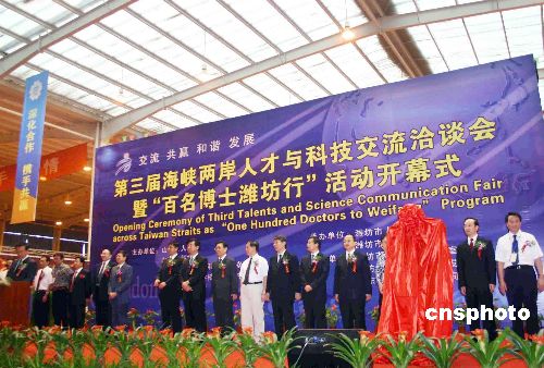 中新社濰坊九月二十日電(記者 張璐)第三屆海峽兩岸人才與科技交流洽談會暨“百名博士濰坊行”活動,今天在山東省濰坊市拉開帷幕,來自海內外的一百二十多名博士、專家,六百八十多家參會企業及一萬余市民參加了今天的開幕式。