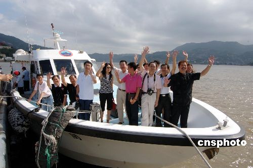 九月二十八日上午,三十七名福建居民首次乘坐“閩珠一號”經(jīng)由“兩馬”(馬尾—馬祖)航線前往馬祖后,轉(zhuǎn)機(jī)赴澎湖旅游。福州——澎湖旅游團(tuán)首團(tuán)成行,標(biāo)志著福建——澎湖雙向旅游往來正式開通。 中新社發(fā) 王東明 攝