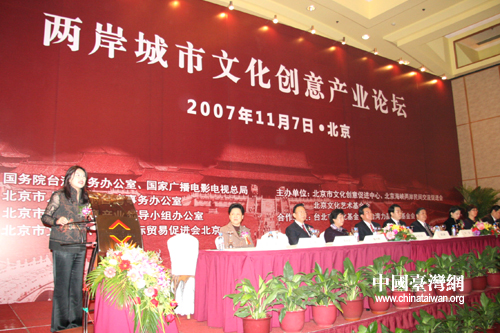 “兩岸城市文化創(chuàng)意產(chǎn)業(yè)論壇”是2007年兩岸城市文化創(chuàng)意產(chǎn)業(yè)交流互訪系列活動(dòng)之一。旨在促進(jìn)兩岸文化創(chuàng)意產(chǎn)業(yè)策略、方法與務(wù)實(shí)經(jīng)驗(yàn)等方面交流,積極搭建兩岸文化創(chuàng)意產(chǎn)業(yè)交流平臺(tái)。此次有200余名來(lái)自京臺(tái)兩地的文化創(chuàng)意、影視產(chǎn)業(yè)界人士相聚北京,就進(jìn)一步推動(dòng)兩岸文化創(chuàng)意產(chǎn)業(yè)的交流與合作進(jìn)行研討。(文/圖 李徽)